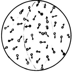 Chaotische Bewegungen der Teilchen, ihre Impulse (P = m υ) und damit ihre Geschwindigkeiten mit der Zeit gleichen sich aus.